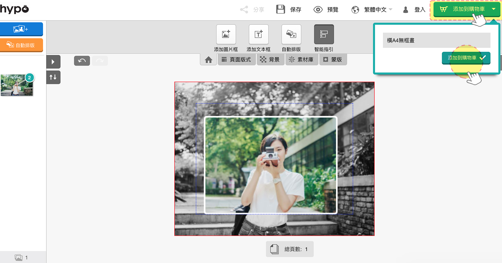 編輯完成要訂購時,請將作品加入購物車,別忘了為這份作品命名,方便您下次可以再編輯或訂購