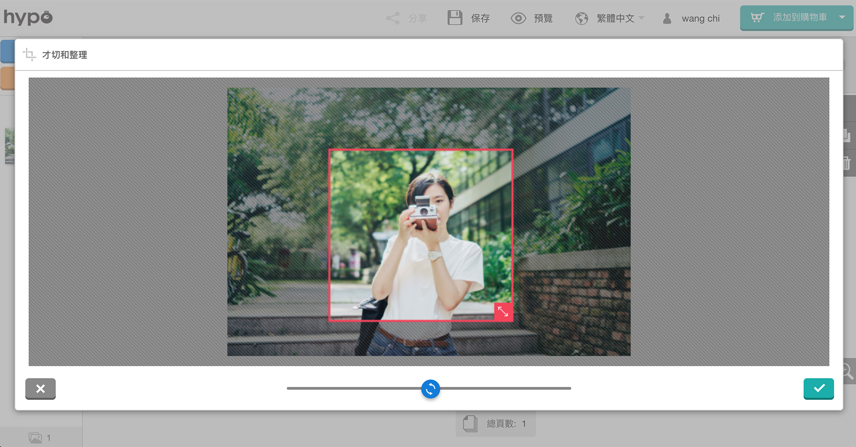 點擊兩下置入的照片可以裁切或縮放印刷範圍