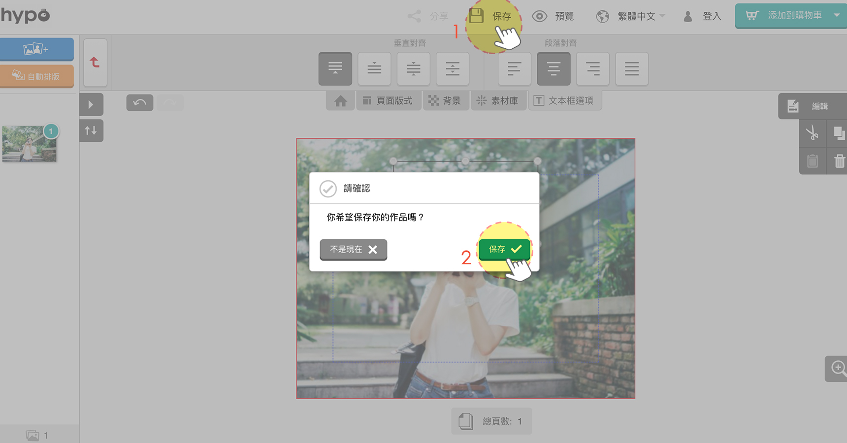 若編輯過程需要暫停,您可以選擇保存作品、並為作品命名下次回來再繼續編輯!