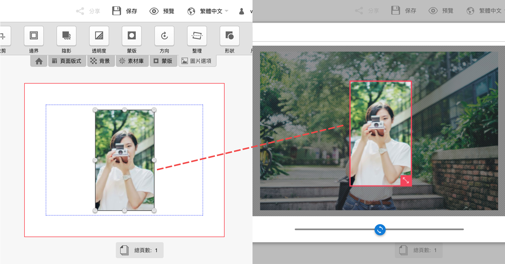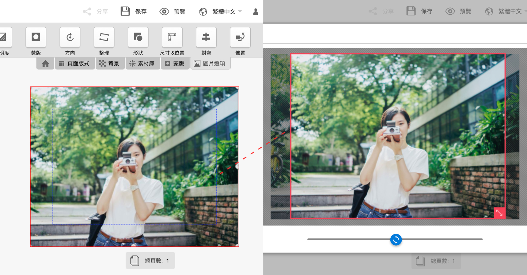 當圖片框的圖片比例或是置入的圖片比例與您想要的不同時您可以點擊圖片兩下進入裁切比例工具調整!