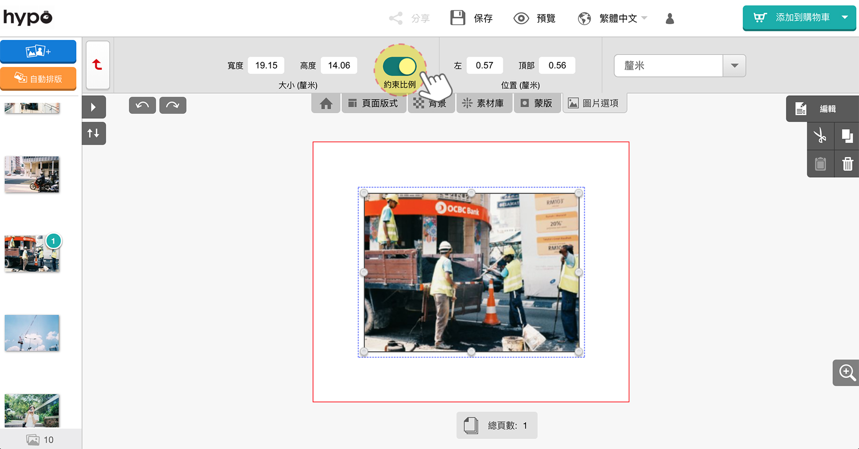 此功能可以固定比例縮放若要固定比例縮放,請先開啟再輸入期望尺寸,此外,按住shift縮放也能有等比例縮放的效果