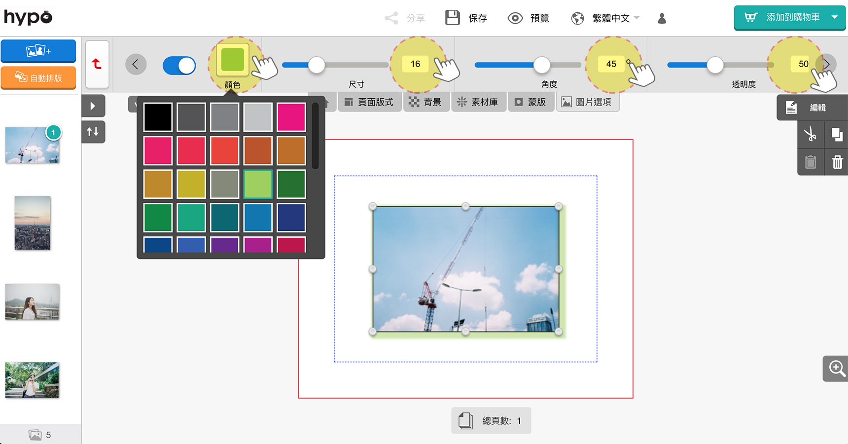 我們提供不同的頁面樣式,選擇想要的版型配置後,直接置入圖片,讓編輯過程更加輕鬆簡單